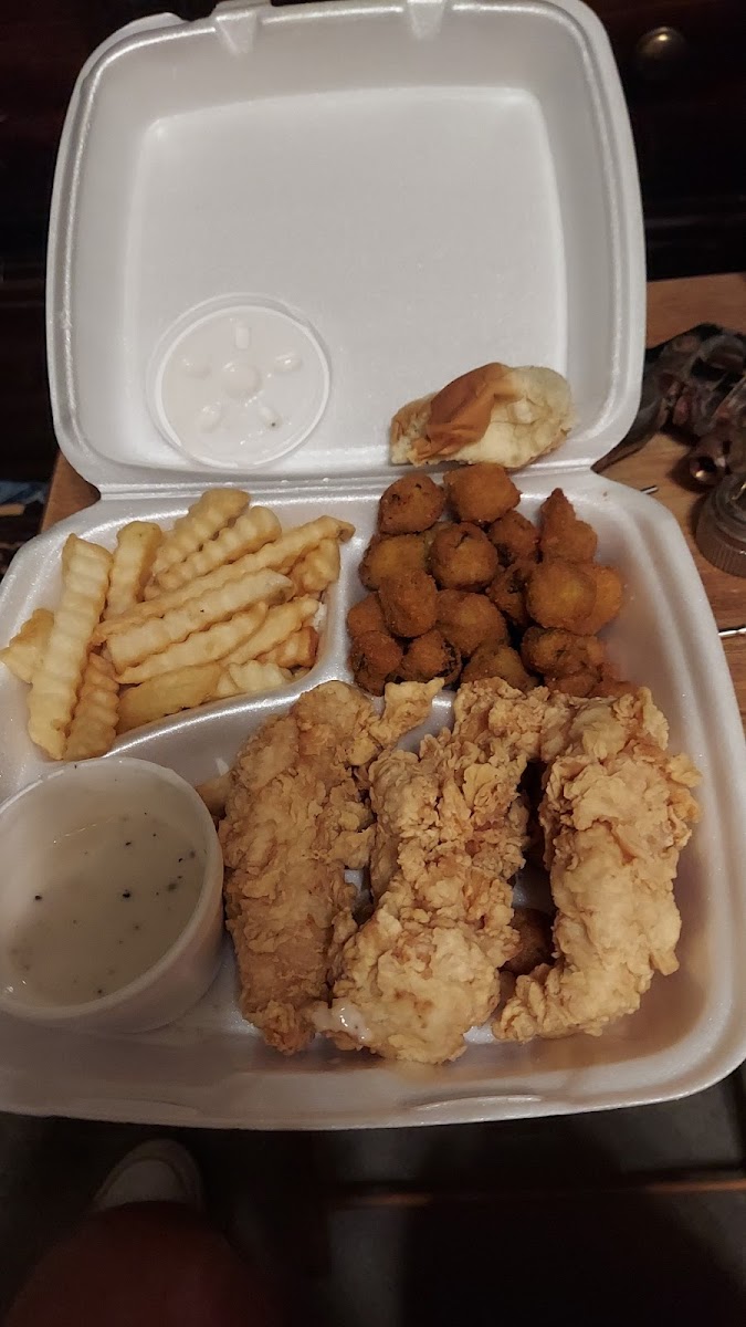 Shrimp Dinner French Fries and Okra