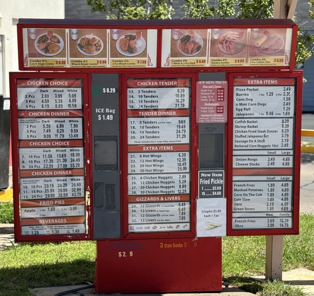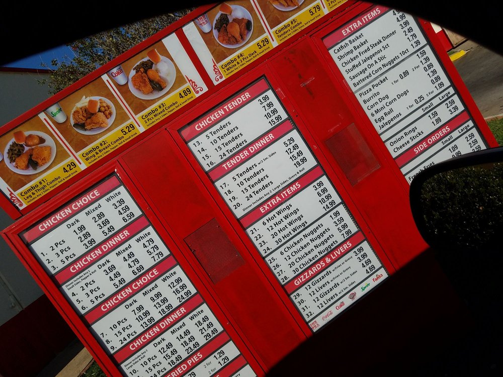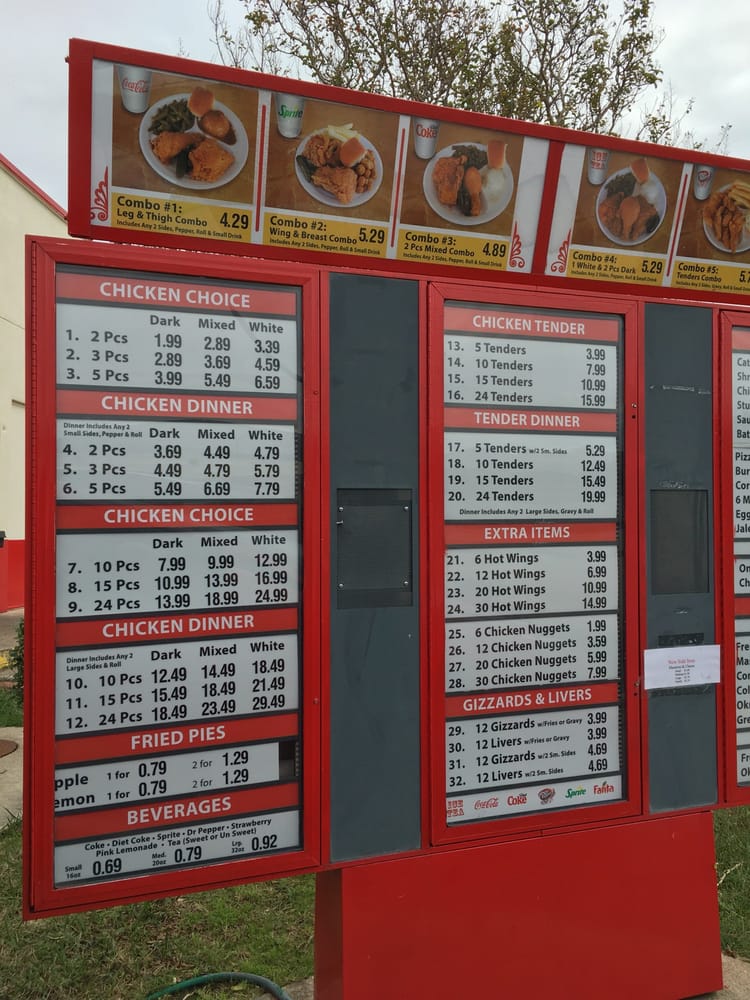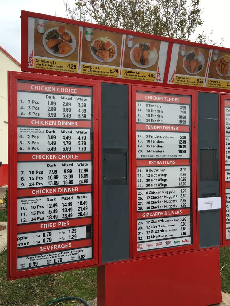 pieces of dark meat fried chicken, with small side items of your choice, a jalapeno pepper & dinner roll, and a oz drink